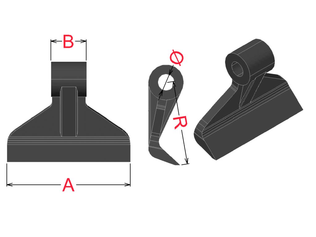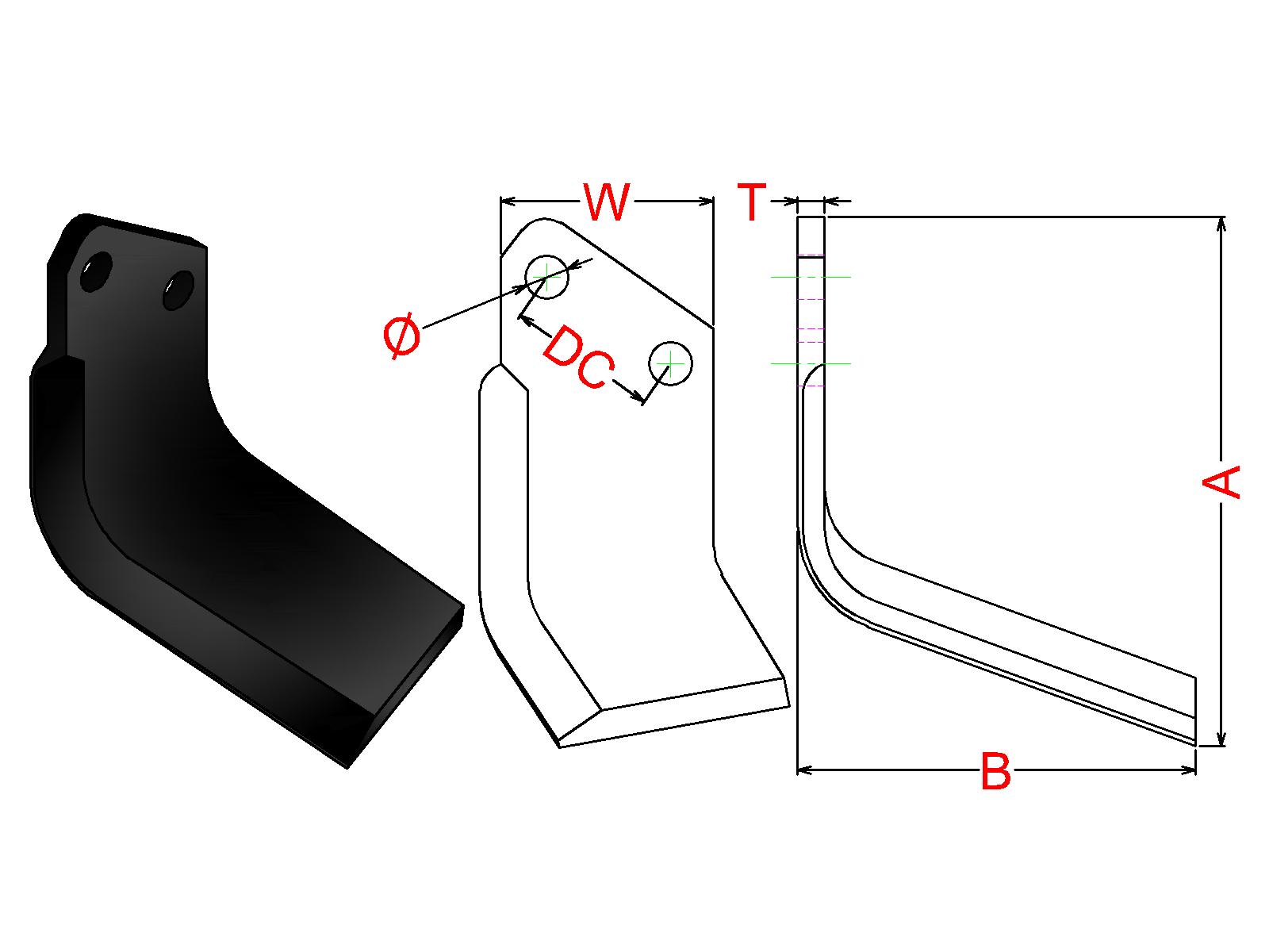 Cuchilla Ref: nº.107-L7 / Medidas: A:195 B:150 /Pletina:80X10 / Dist.centros: 57 / Taladro: 17 / Peso: kg.