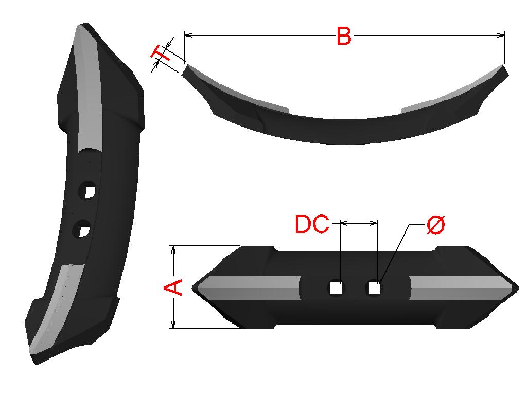 y otros refuerzos y tratamientos especiales para aquellas piezas donde su zona de desgaste es más agresiva.