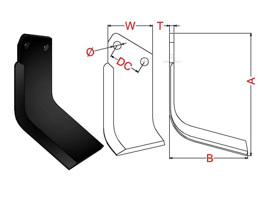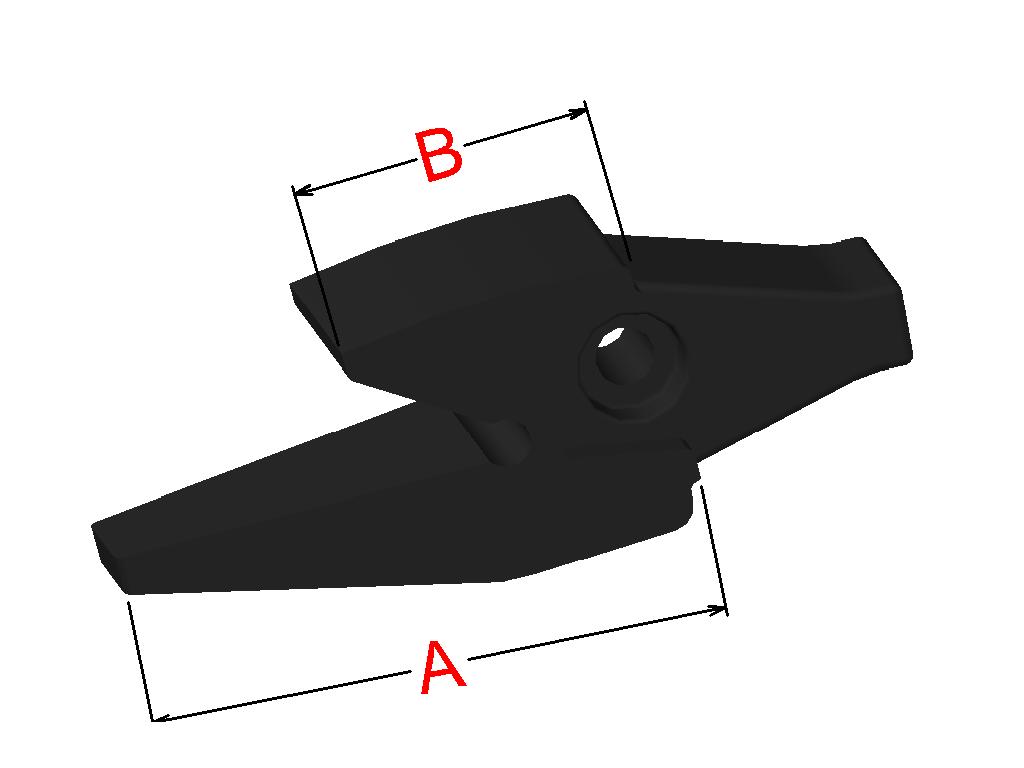 Cuchilla Ref: nº.107R / Medidas: A:200 B:150 /Pletina:100X8 / Dist.centros: 57 / Taladro: 13,5 / Peso: 1,458 kg.