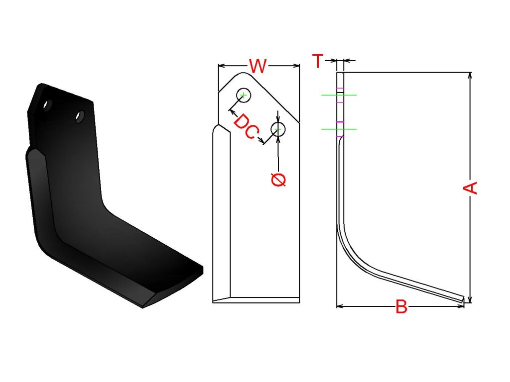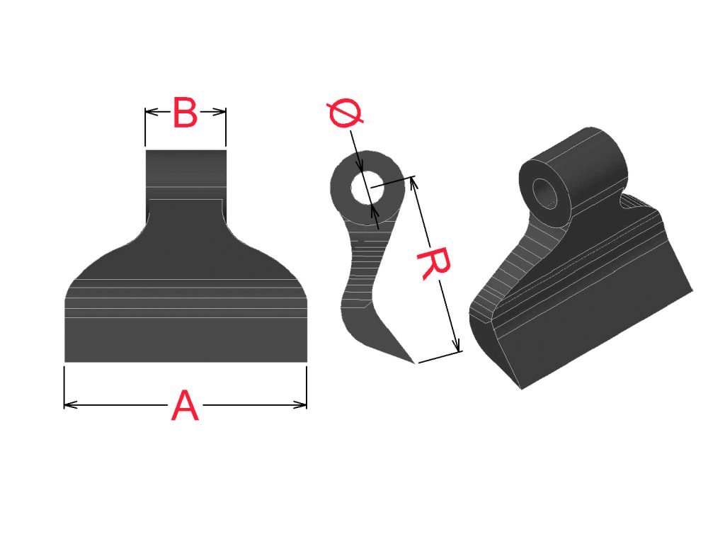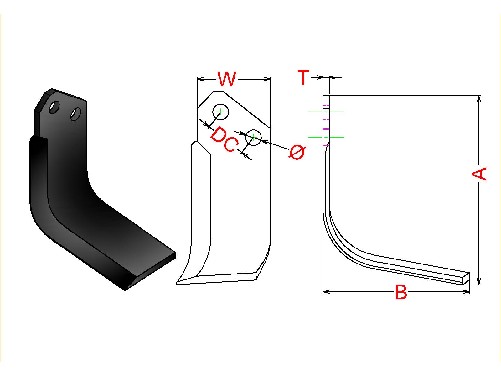Cuchilla Ref: nº.11 / Medidas: A:160 B:120 /Pletina:60X6 / Dist.centros: 35 / Taladro: 13.5 / Peso: 0,611 kg.