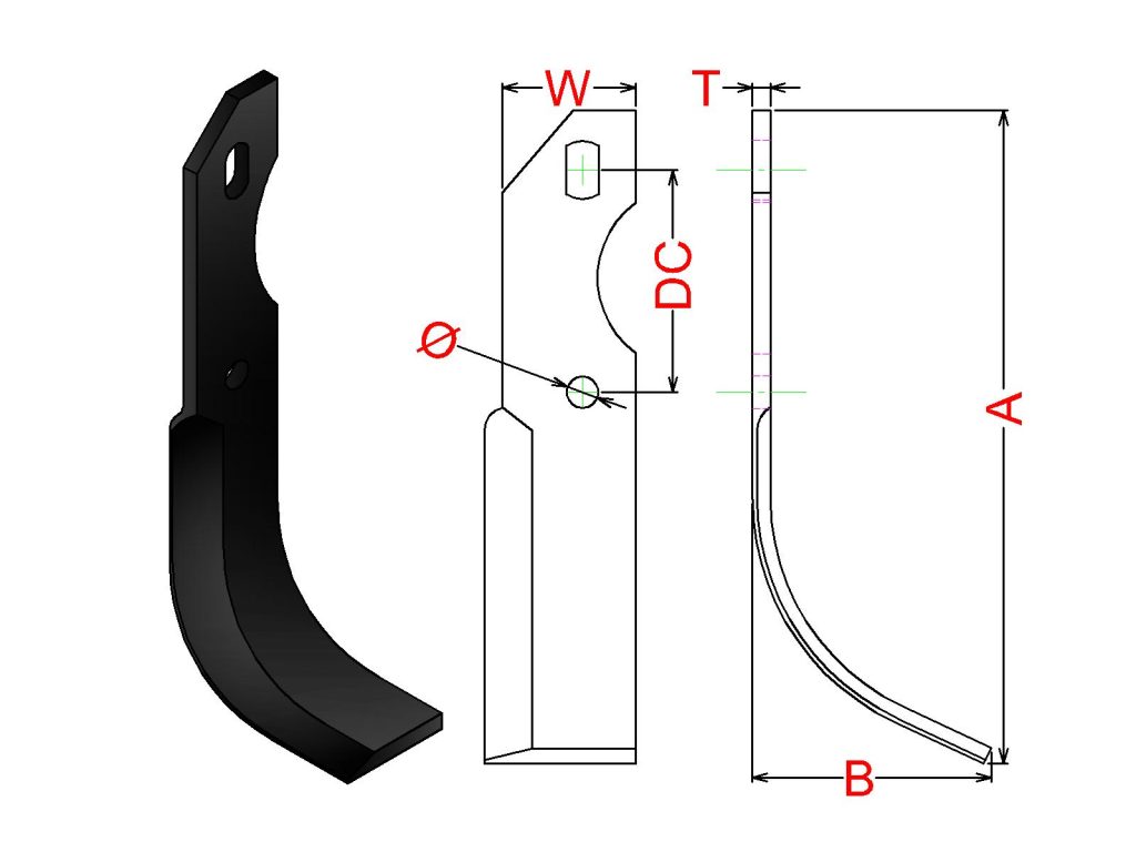 Cuchilla Ref: nº.11 / Medidas: A:160 B:120 /Pletina:60X6 / Dist.centros: 35 / Taladro: 11.75 / Peso: 0,609 kg.