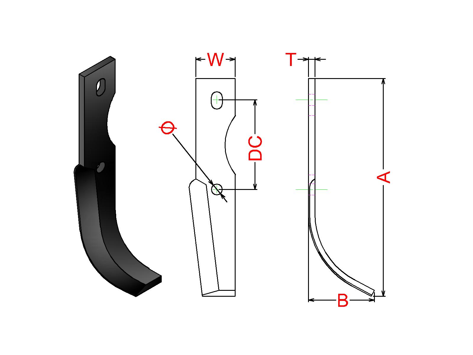 Cuchilla Ref: nº.195C/ Medidas: A:165 B:50 /Pletina:30X5/ Dist.centros:68 / Taladro: 8.5 / Peso: 0,220 kg.