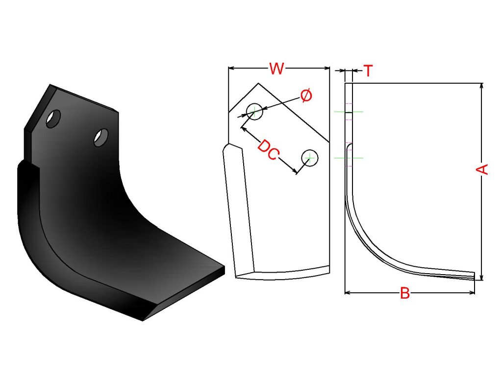 Cuchilla Ref: JSC nº.2 / Medidas: A: B: / Pletina: 80X8 / Dist.centros: 57 / Taladro: 1/2 / Peso: kg RECTA