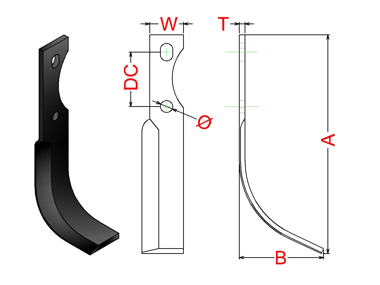 Cuchilla Ref: nº.200CM/ Medidas: A:195 B:75 /Pletina:35X5/ Dist.centros: 48-50 / Taladro: 10.5 / Peso: 0,295 kg.