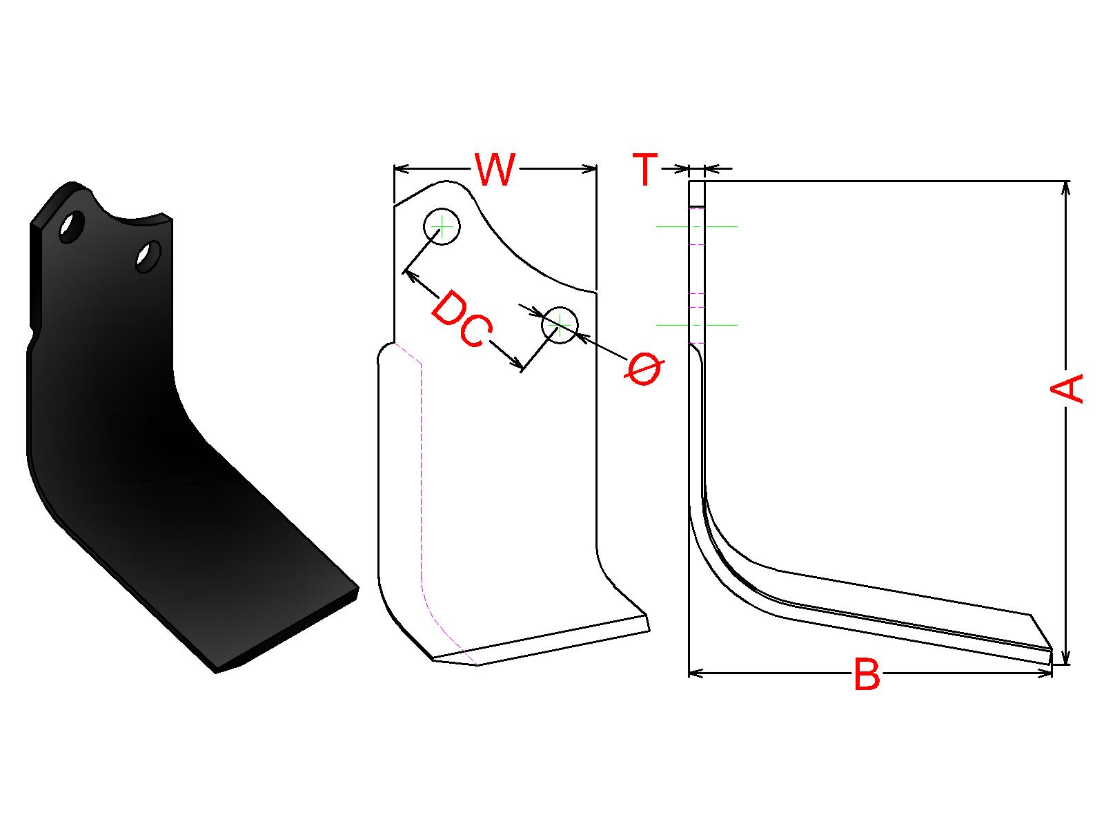Cuchilla Ref: nº.207B / Medidas: A:180 B:135 /Pletina:75X6 / Dist.centros: 57 / Taladro: 13,5 / Peso: 0,890 kg.