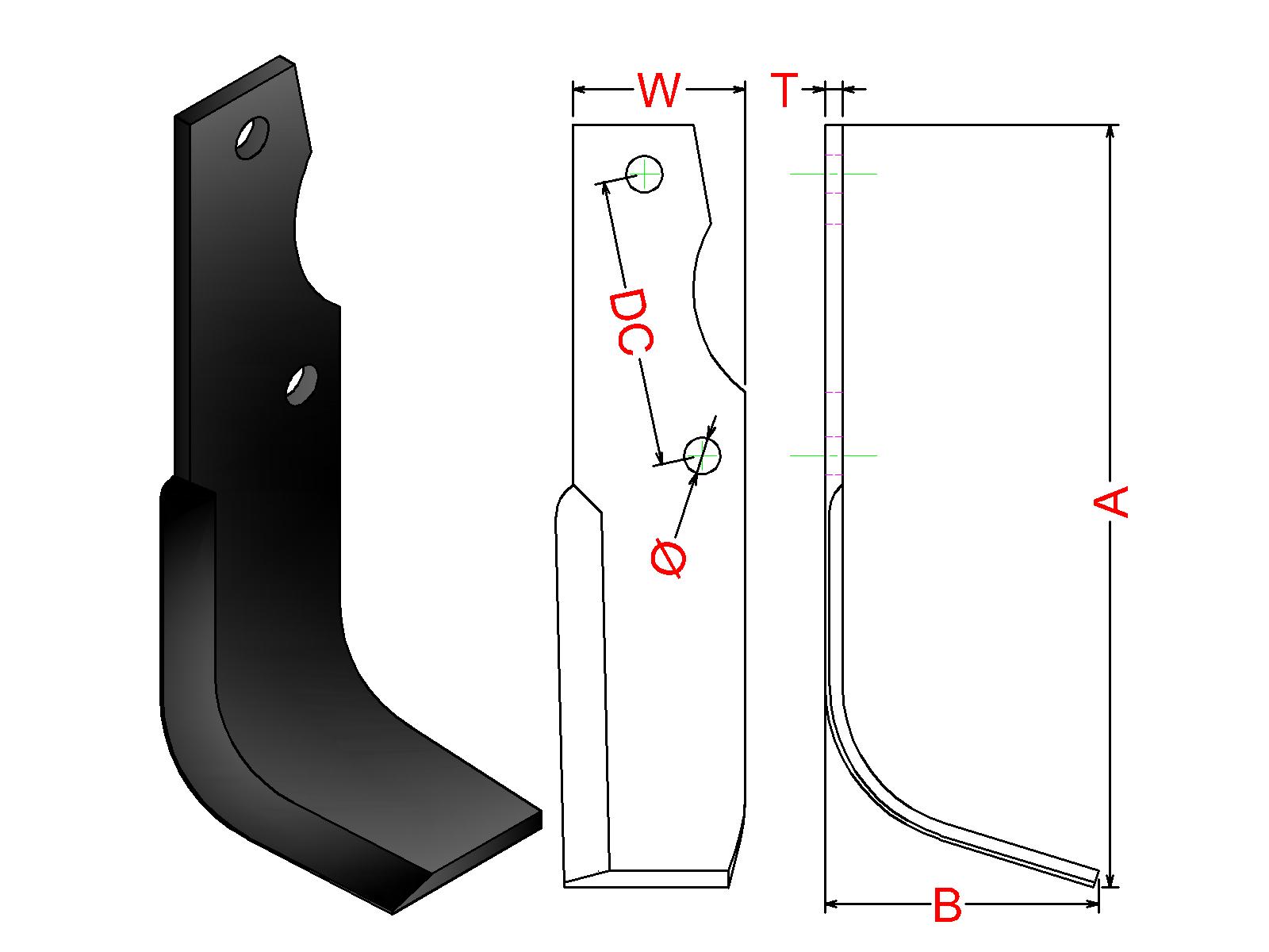 Cuchilla Ref: nº.234 / Medidas: A:265 B:95 /Pletina:60X6 / Dist.centros: 100 / Taladro: 12,5 / Peso: 0,844 kg.