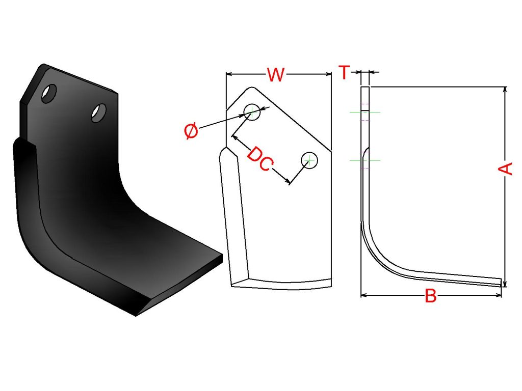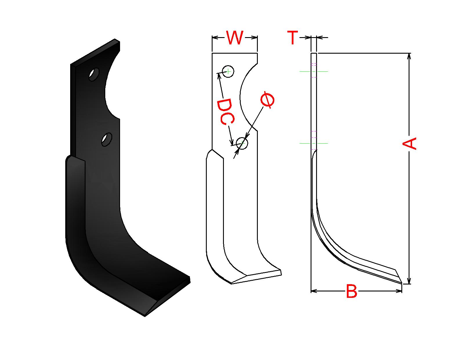 Cuchilla Ref: nº.302CC/ Medidas: A:190 B:175 /Pletina:40X5 / Dist.centros: 65 / Taladro: 10.5 / Peso: 0,350 kg.