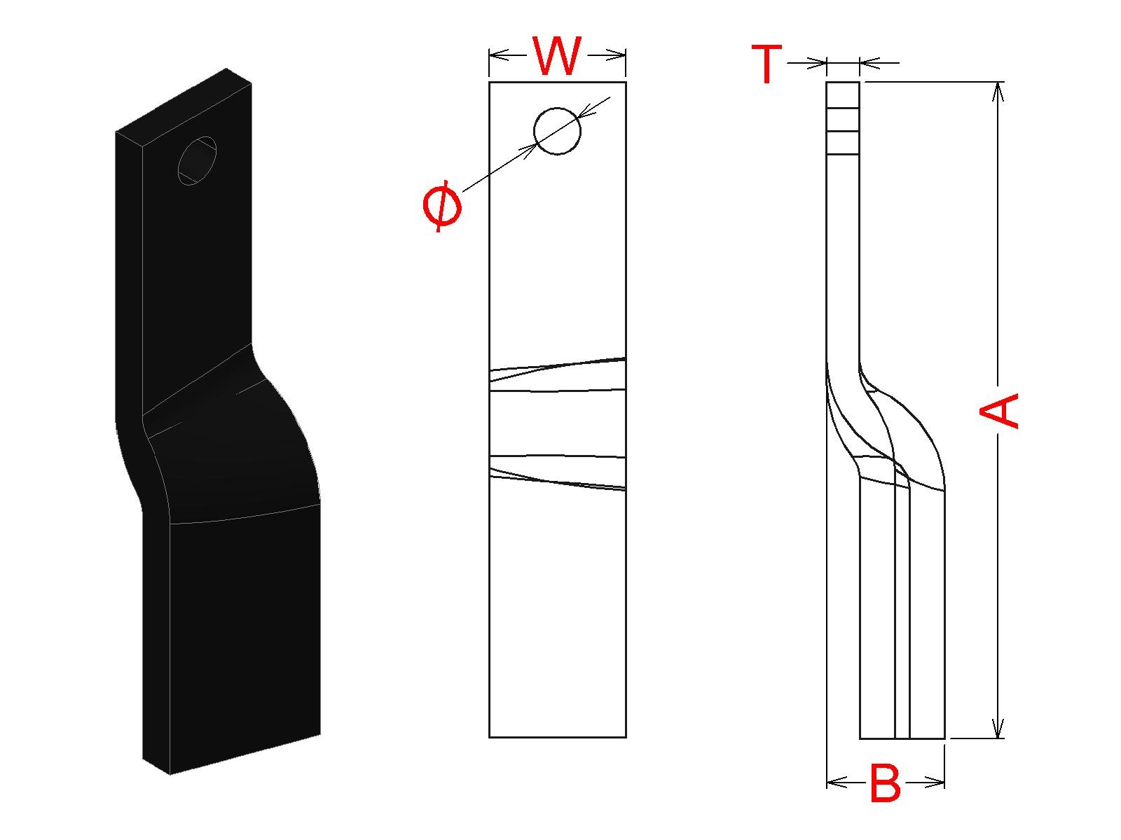 Cuchilla Ref: nº.315-1T/ Medidas: A:237 B:58 /Pletina:60X10 Taladro: 16.5 / Peso: 1,079 kg.
