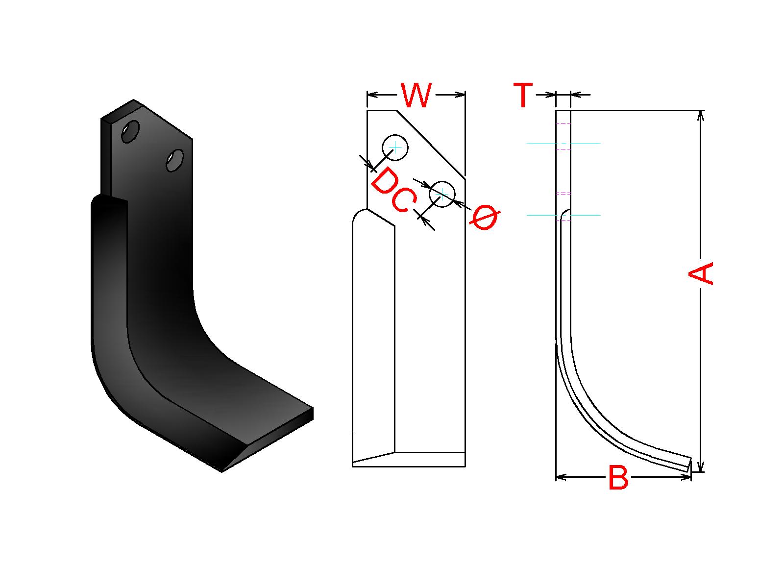 Cuchilla Ref: nº.343P/ Medidas: A:140 B:80 /Pletina:40X6/ Dist.centros: 27 / Taladro: 10.5 / Peso: 0,340 kg.
