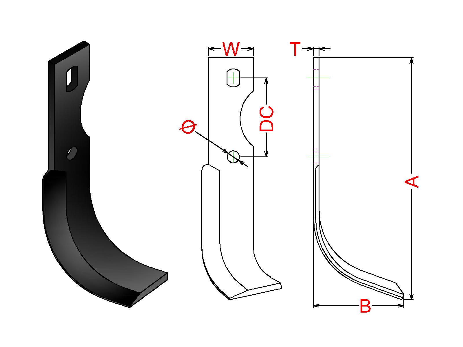 Cuchilla Ref: nº.349A/ Medidas: A:205 B:75 /Pletina:35X5/ Dist.centros: 67 / Taladro: 10.5 / Peso: 0,330 kg.