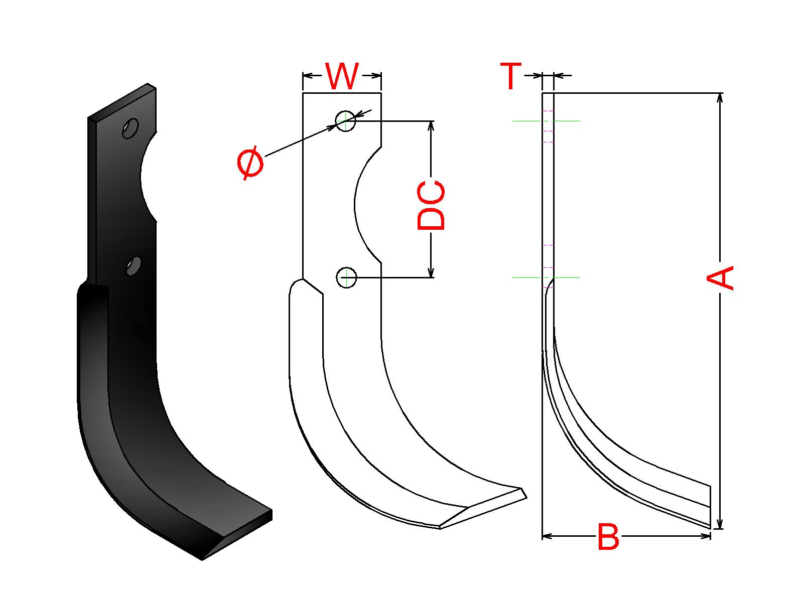 Cuchilla Ref: nº.349A/ Medidas: A:205 B:80 /Pletina:50X6/ Dist.centros: 67 / Taladro: 10.5 / Peso: 0,512 kg.