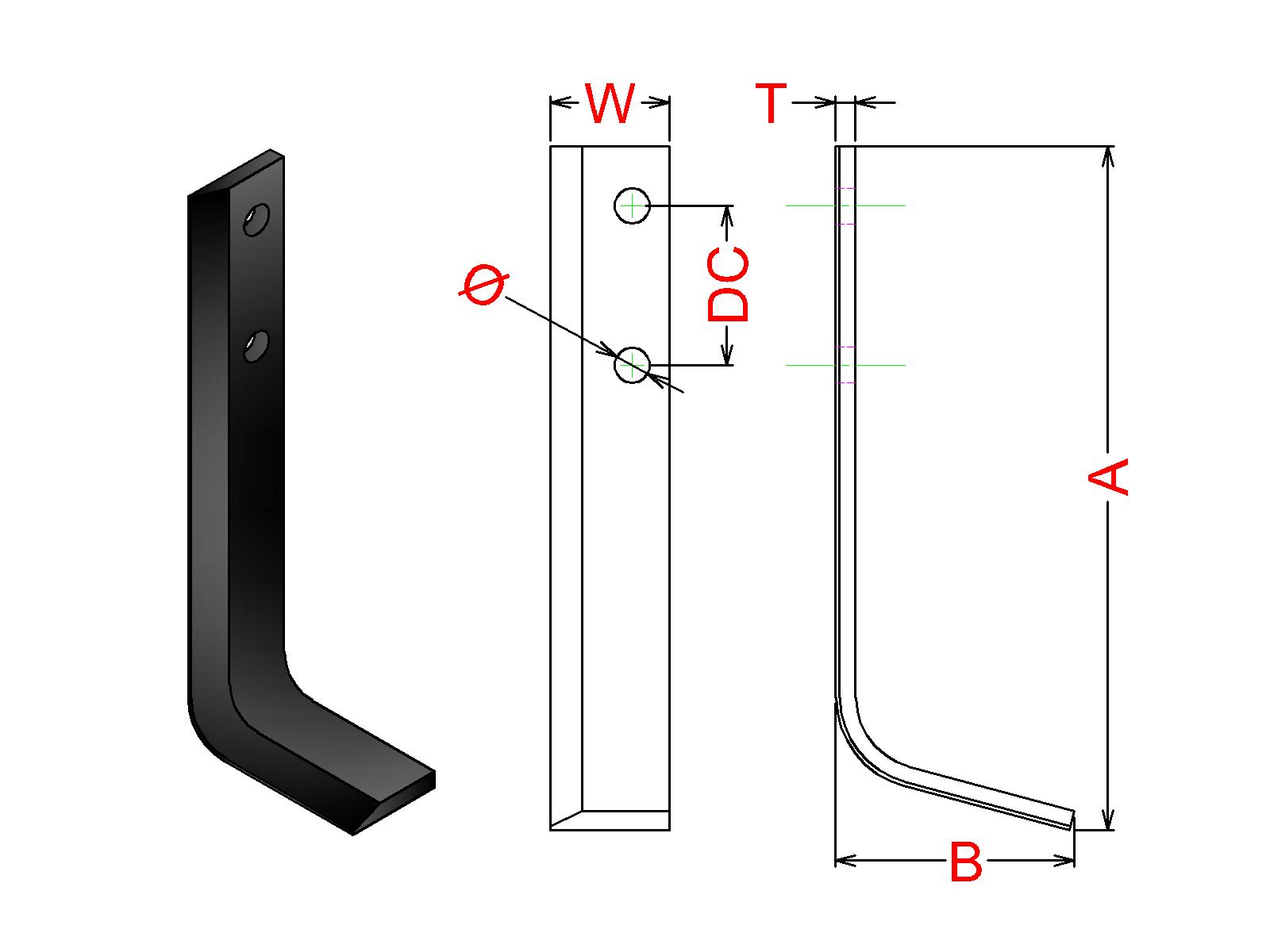 Cuchilla Ref: nº.368C/ Medidas: A:170 B:60 /Pletina:30X5/ Dist.centros:40 / Taladro: 8.5 / Peso: 0,170 kg.
