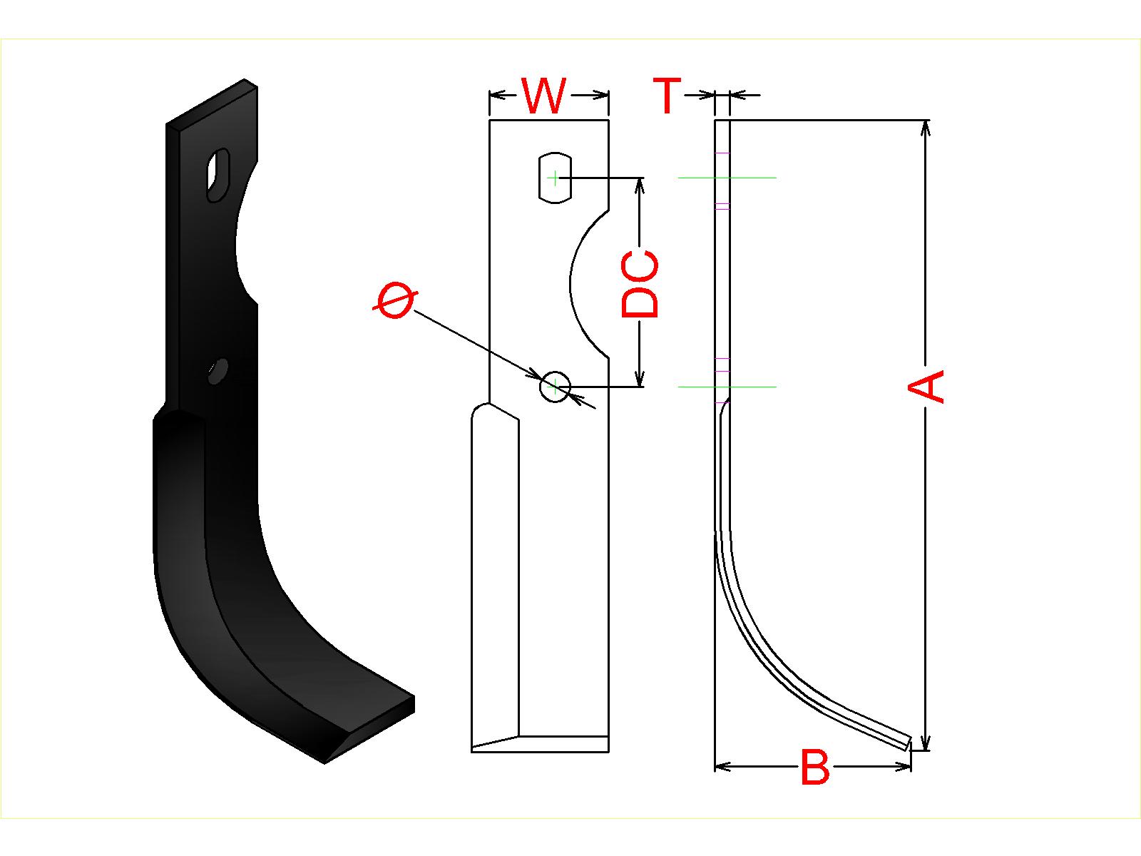 Cuchilla Ref: nº.38 / Medidas: A:205 B:65 /Pletina:40X5 / Dist.centros: 70 / Taladro: 10,5 / Peso: 0,332 kg.