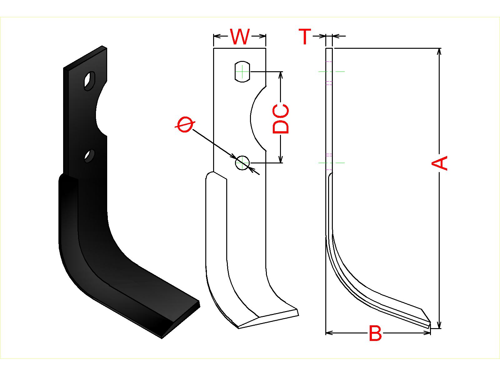 Cuchilla Ref: nº.38A/ Medidas: A:215 B:80 /Pletina:40X5 / Dist.centros: 70 / Taladro: 10.5 / Peso: 0,349 kg.
