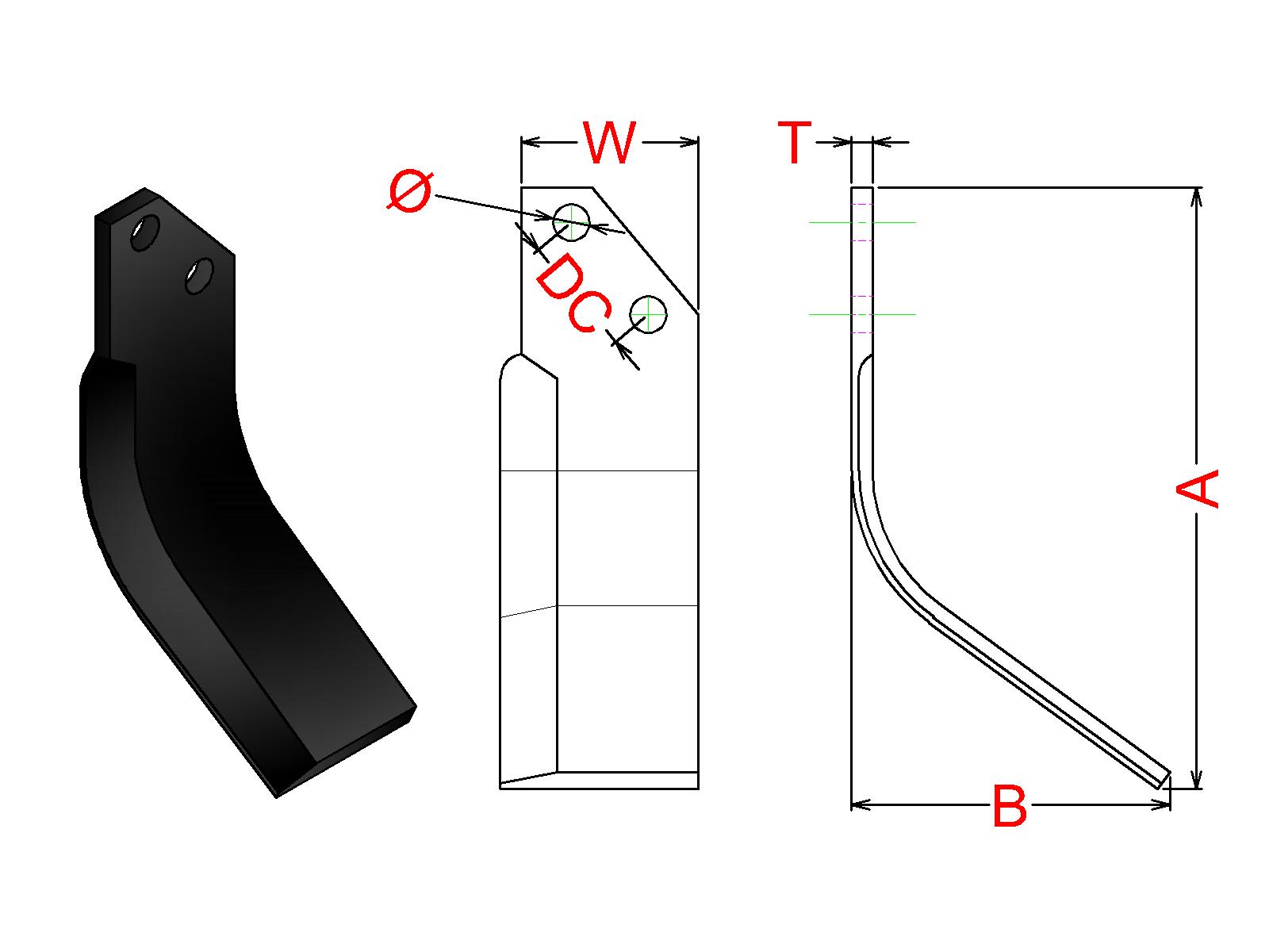 Cuchilla Ref: nº.406/ Medidas: A:170 B:90 /Pletina:50X6/ Dist.centros: 34 / Taladro: 11 / Peso: 0,530 kg.