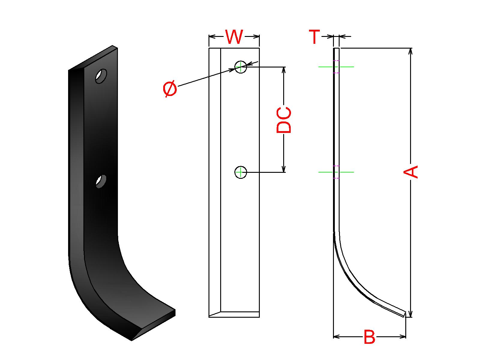 Cuchilla Ref: nº.431/ Medidas: A:235 B:65 /Pletina:40X5/ Dist.centros:90 / Taladro: 10.5 / Peso: 0,376 kg.