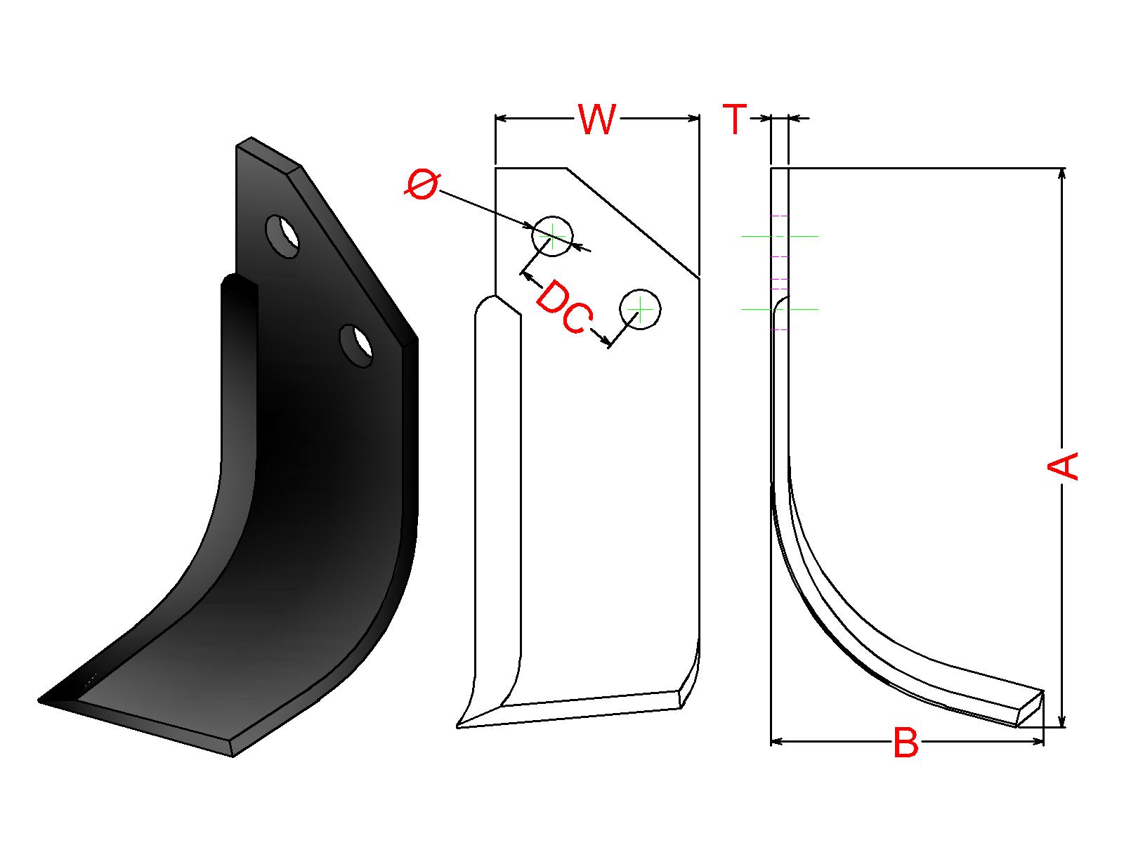 Cuchilla Ref: nº.432 / Medidas: A:220 B:107 /Pletina:80X7 / Dist.centros: 45 / Taladro: 15 / Peso: 1,063 kg.
