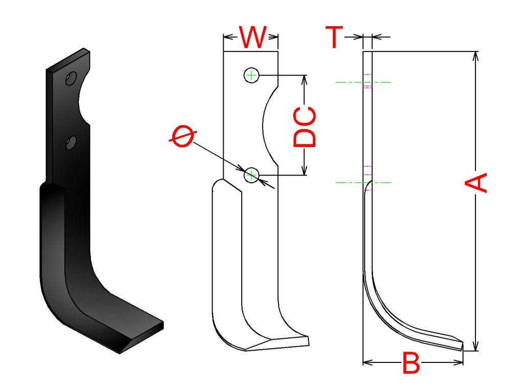 Cuchilla Ref: nº.460 / Medidas: A:160 B:55 /Pletina:50X6 / Dist.centros: 29 / Taladro: 11 / Peso: 0,480 kg.
