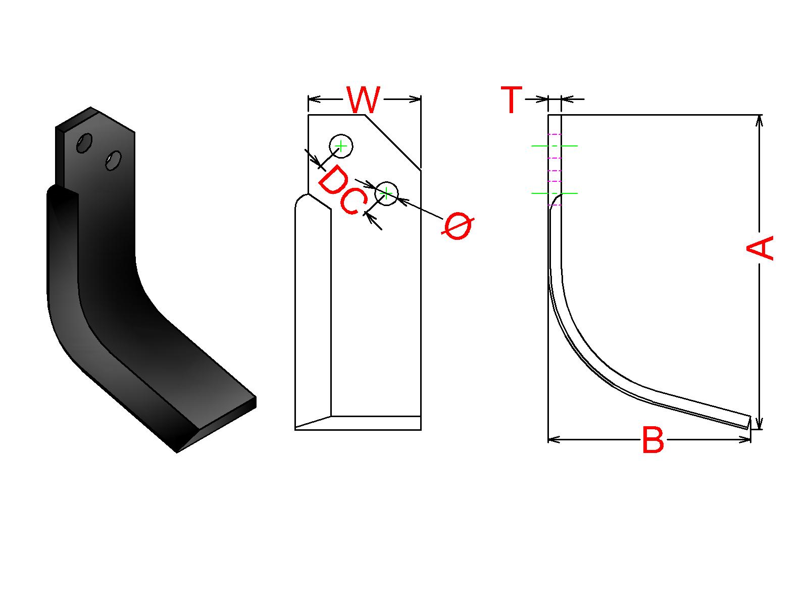 Cuchilla Ref: nº.464 / Medidas: A:140 B:90 /Pletina:50X6 / Dist.centros: 29 / Taladro: 10.5 / Peso: 0,393 kg.