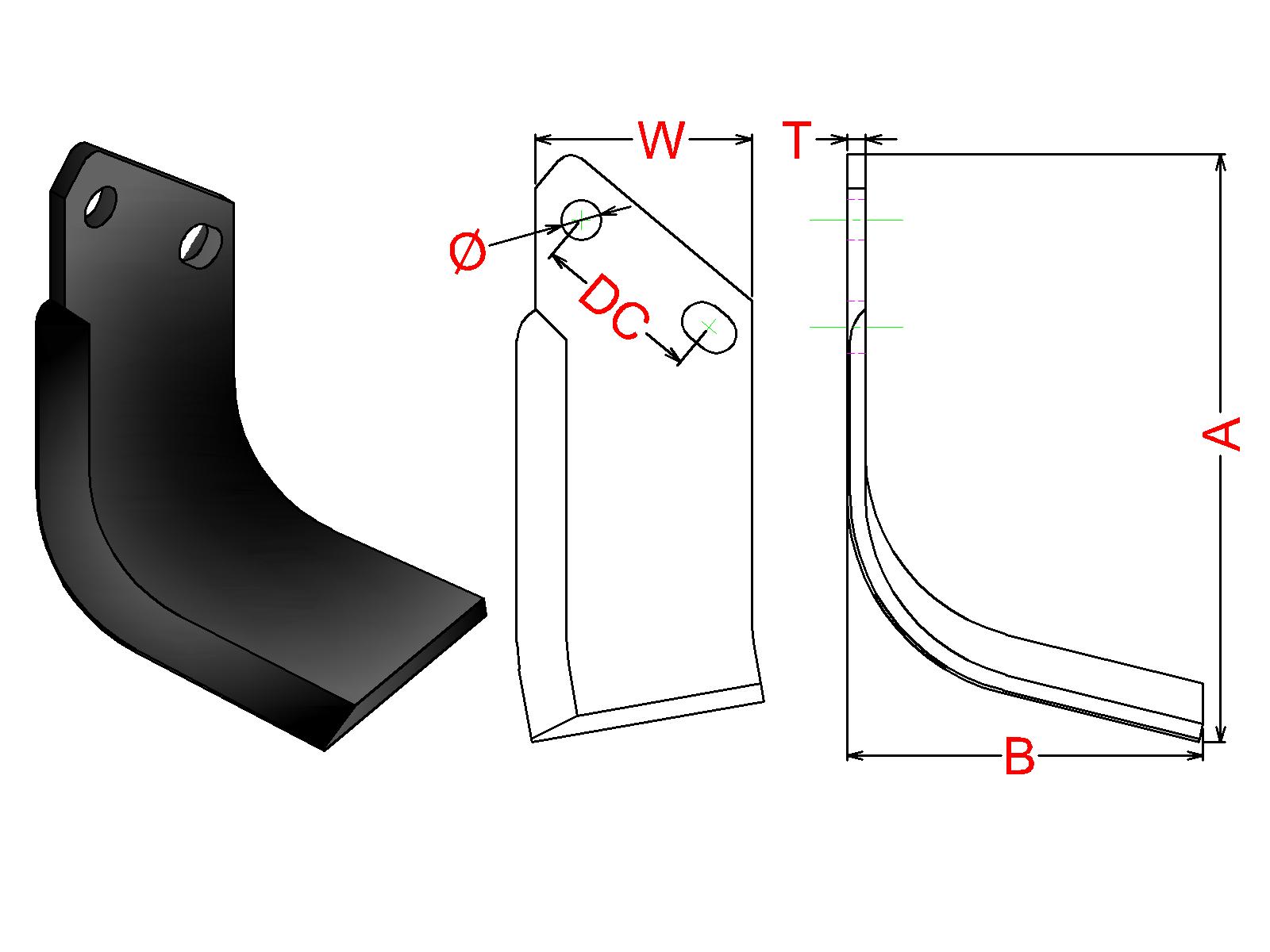Cuchilla Ref: nº.467/ Medidas: A:190 B:115 /Pletina:70X6 / Dist.centros: 54 / Taladro: 12.5 / Peso: 0,760 kg.
