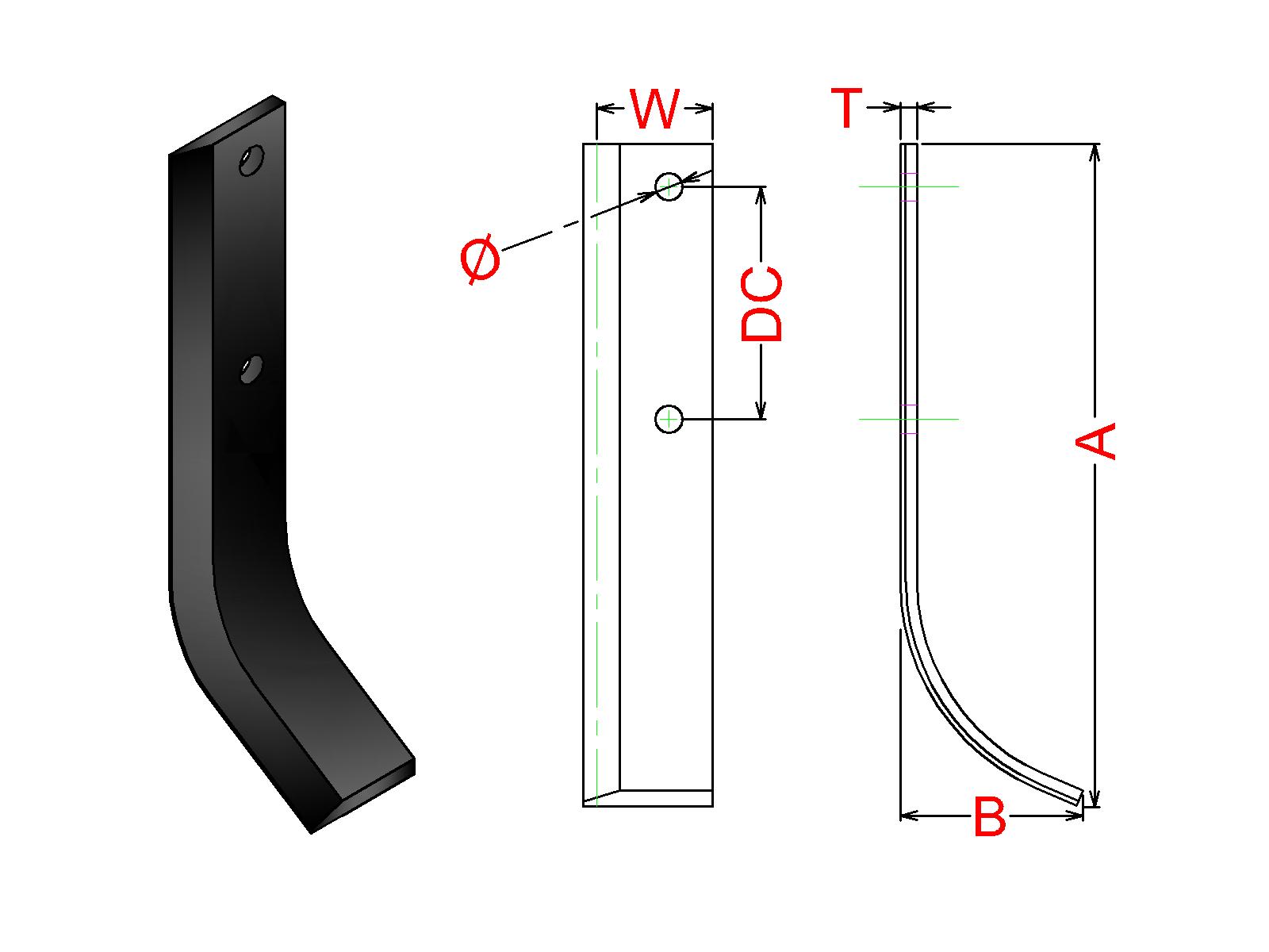 Cuchilla Ref: nº.481/ Medidas: A:200 B:55 /Pletina:35X5/ Dist.centros:70 / Taladro: 8.5 / Peso: 0,304 kg.