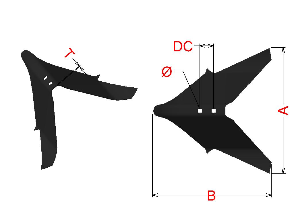 Cuchilla Ref: nº.482NI / Medidas: A:180 B:50 /Pletina:25X10 / Dist.centros: / Taladro: 11 / Peso: kg.