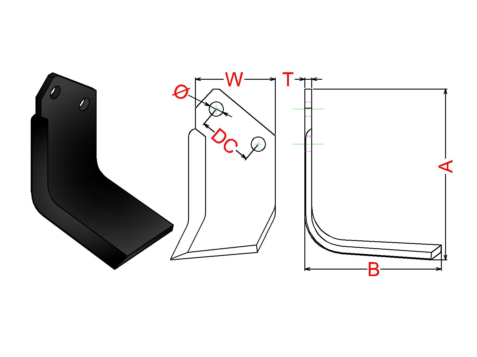 Cuchilla Ref: nº.491 / Medidas: A:172 B:135 /Pletina:80X7 / Dist.centros: 55 / Taladro: 14,5 / Peso: 1,200 kg.