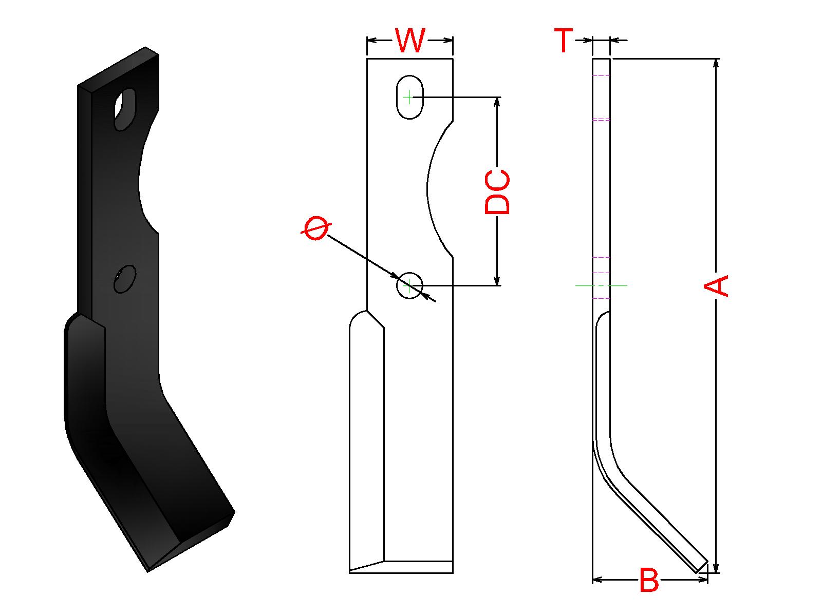 Cuchilla Ref: nº.617 / Medidas: A: B: /Pletina:50X10 / Dist.centros: 110 / Taladro: 15 / Peso: kg