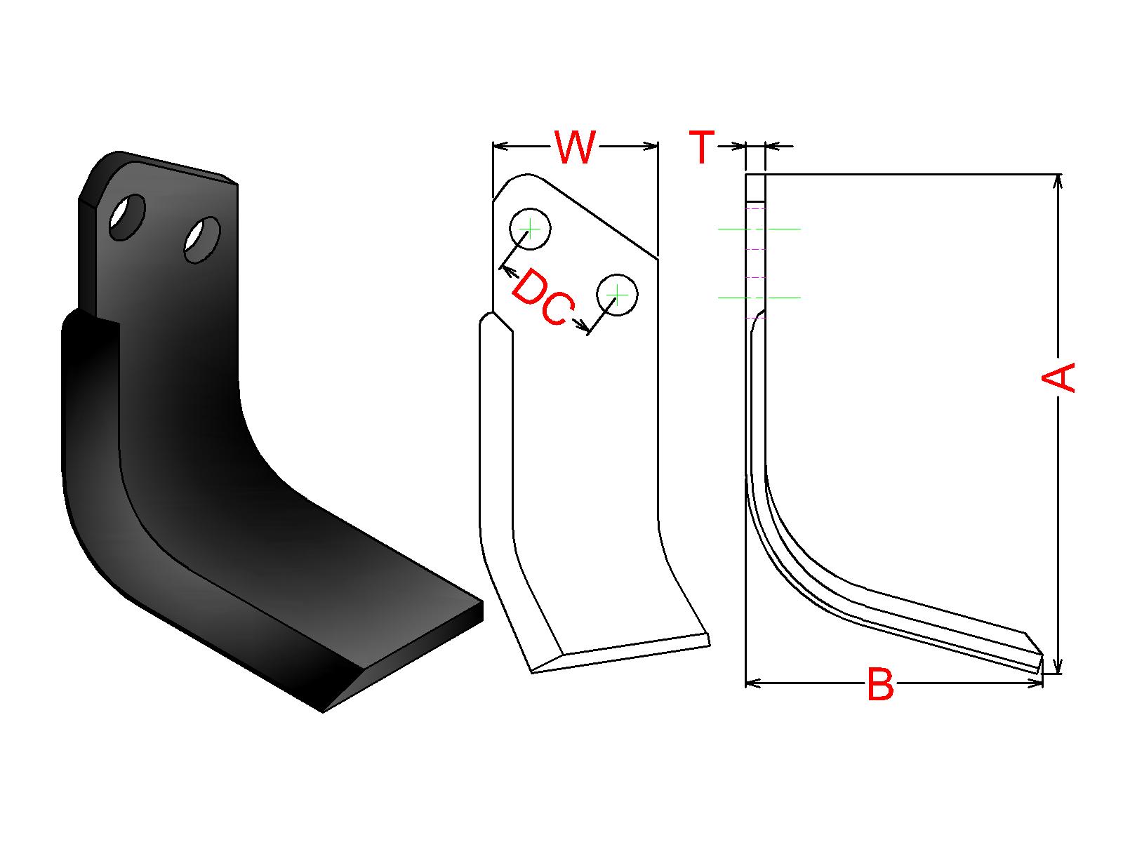 Cuchilla Ref: nº.619/ Medidas: A:185 B:110 /Pletina:60X7 / Dist.centros: 40 / Taladro: 15 / Peso: 0,685 kg.