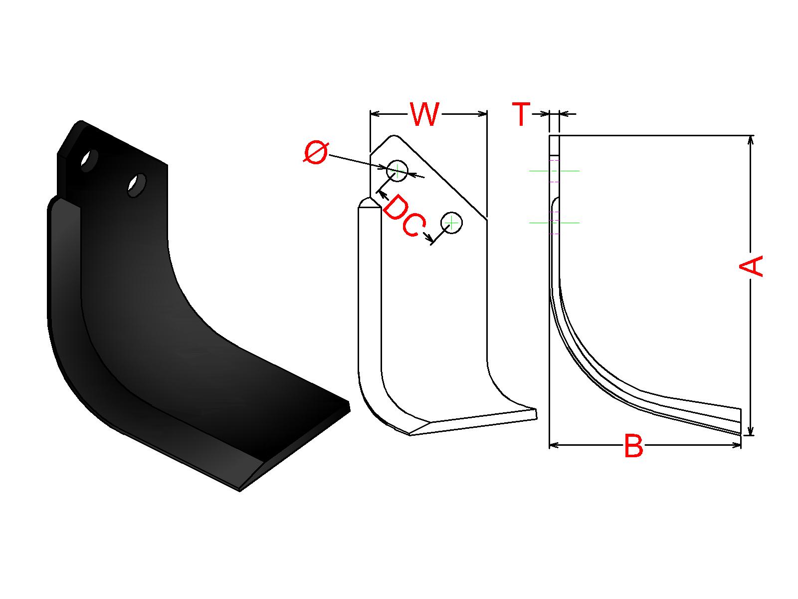 Cuchilla Ref: nº.622 / Medidas: A:180 B:106 /Pletina:70X6 / Dist.centros: 45 / Taladro: 12,5 / Peso: 0,820 kg.