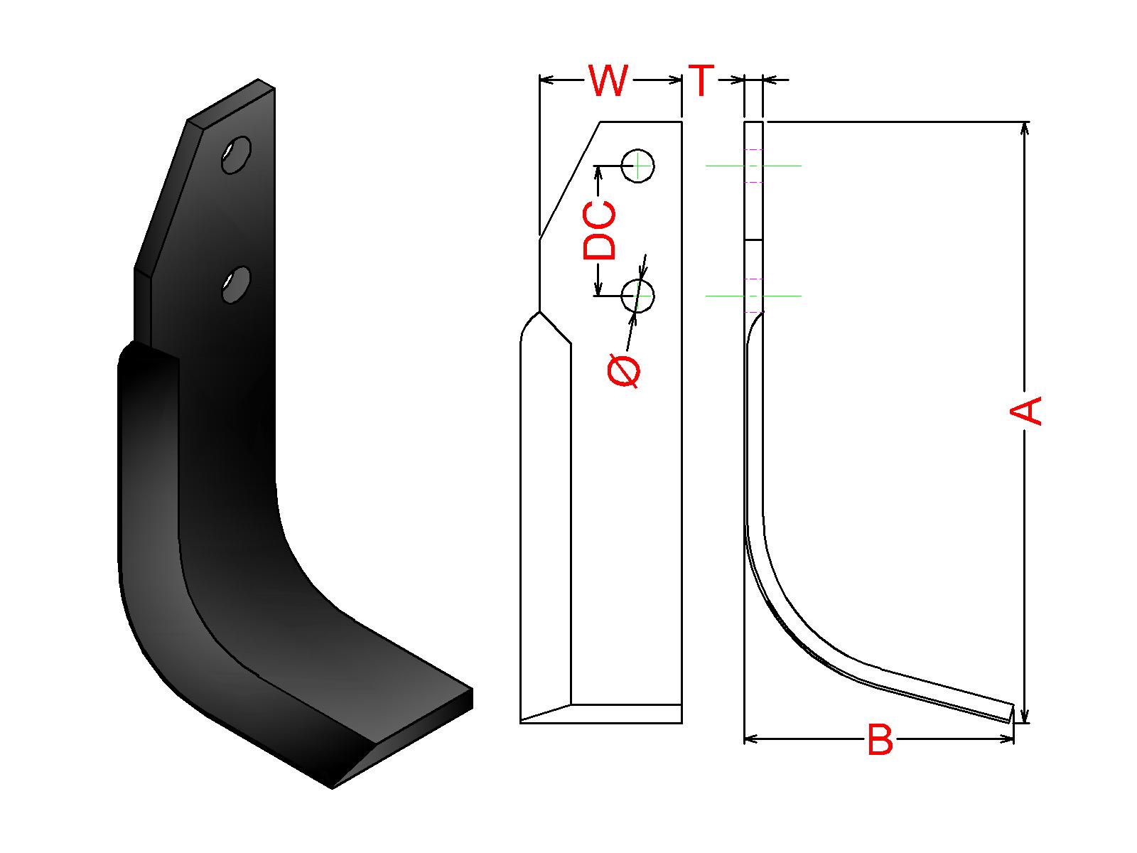 Cuchilla Ref: nº.627 / Medidas: A:190 B:85 /Pletina:45X6 / Dist.centros: 41 / Taladro: 11 / Peso: 0,490 kg.