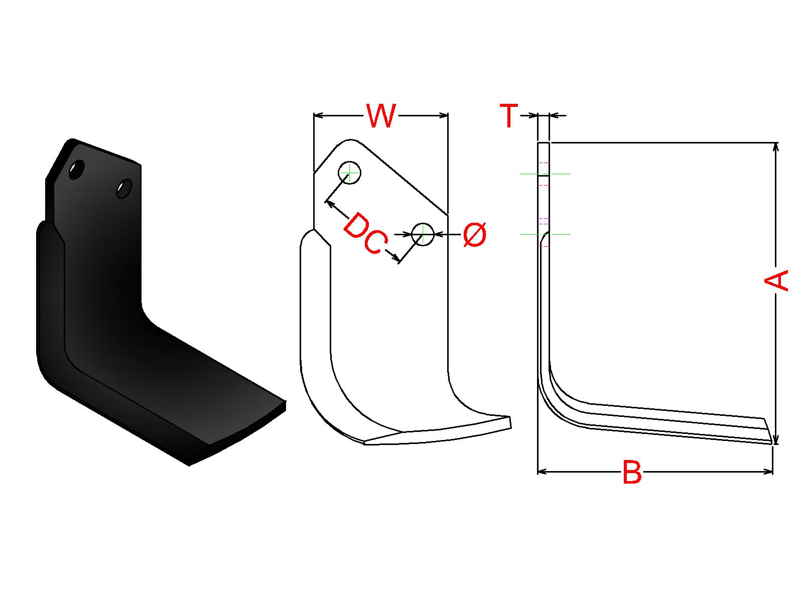 Cuchilla Ref: JSC nº.630 / Medidas: A: B: / Pletina: 80X10 / Dist.centros: 57 / Taladro: 1/2 / Peso: kg