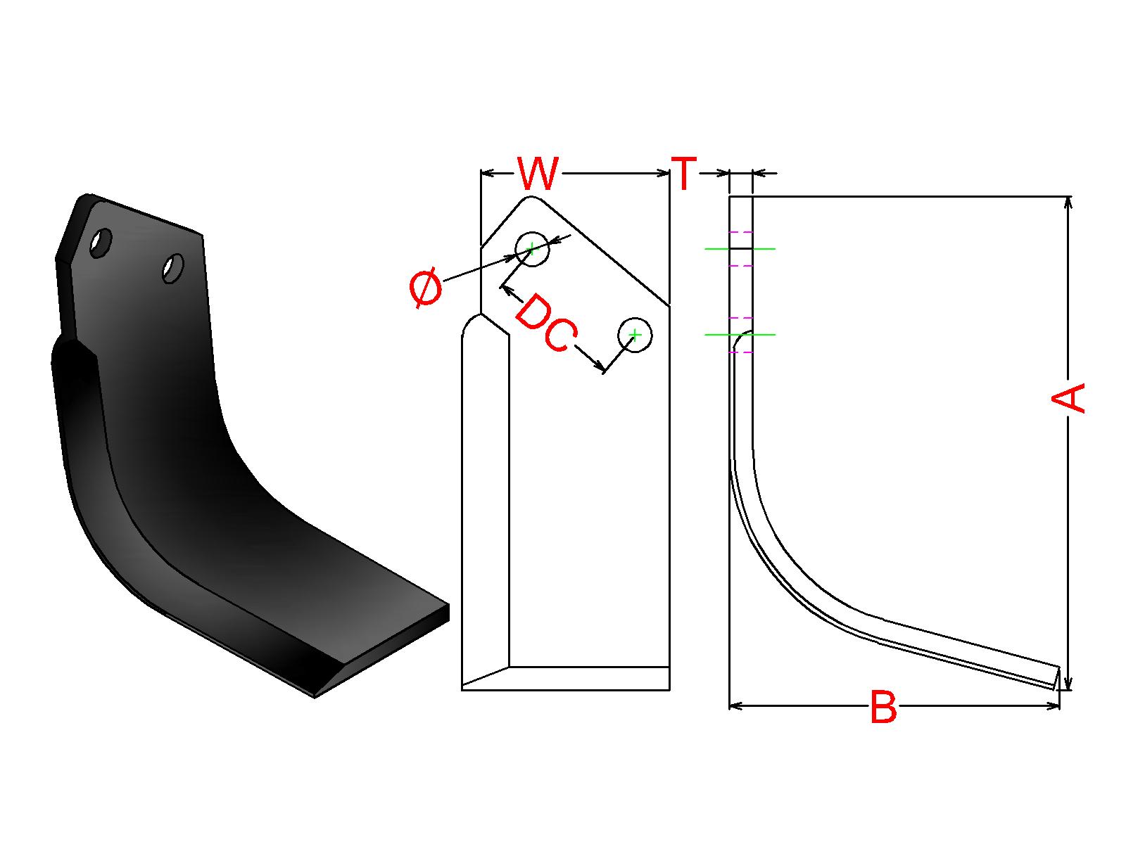 Cuchilla Ref: nº.687/ Medidas: A:210 B:140 /Pletina:80X10/ Dist.centros: 57 / Taladro: 16.5 / Peso: 1,870 kg.
