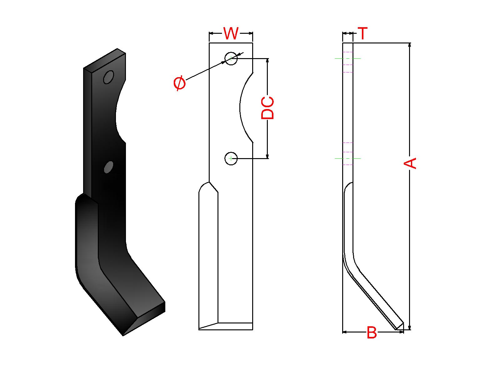 Cuchilla Ref: nº.690 / Medidas: A:330 B:70 /Pletina:50X12 / Dist.centros: 115 / Taladro: 15 / Peso: 1,650 kg.