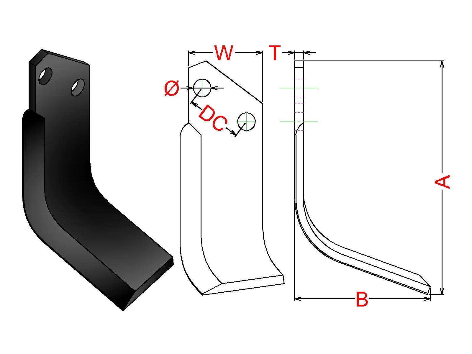 Cuchilla Ref: nº.692 / Medidas: A:190 B:110 /Pletina:60X7 / Dist.centros: 45 / Taladro: 14,5 / Peso: 0,820 kg.