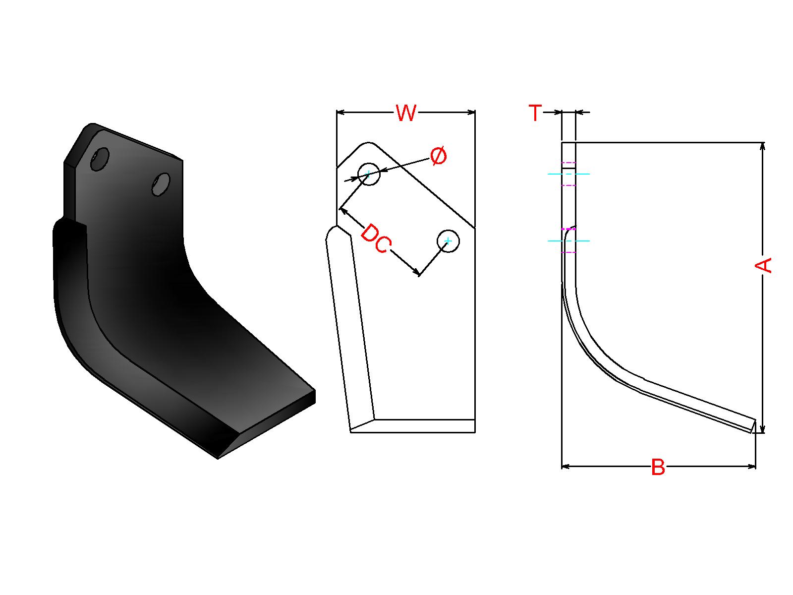 Cuchilla Ref: nº.694 / Medidas: A:210 B:140 /Pletina:100X10 / Dist.centros: 75 / Taladro: 16.5 / Peso: 2,300 kg.