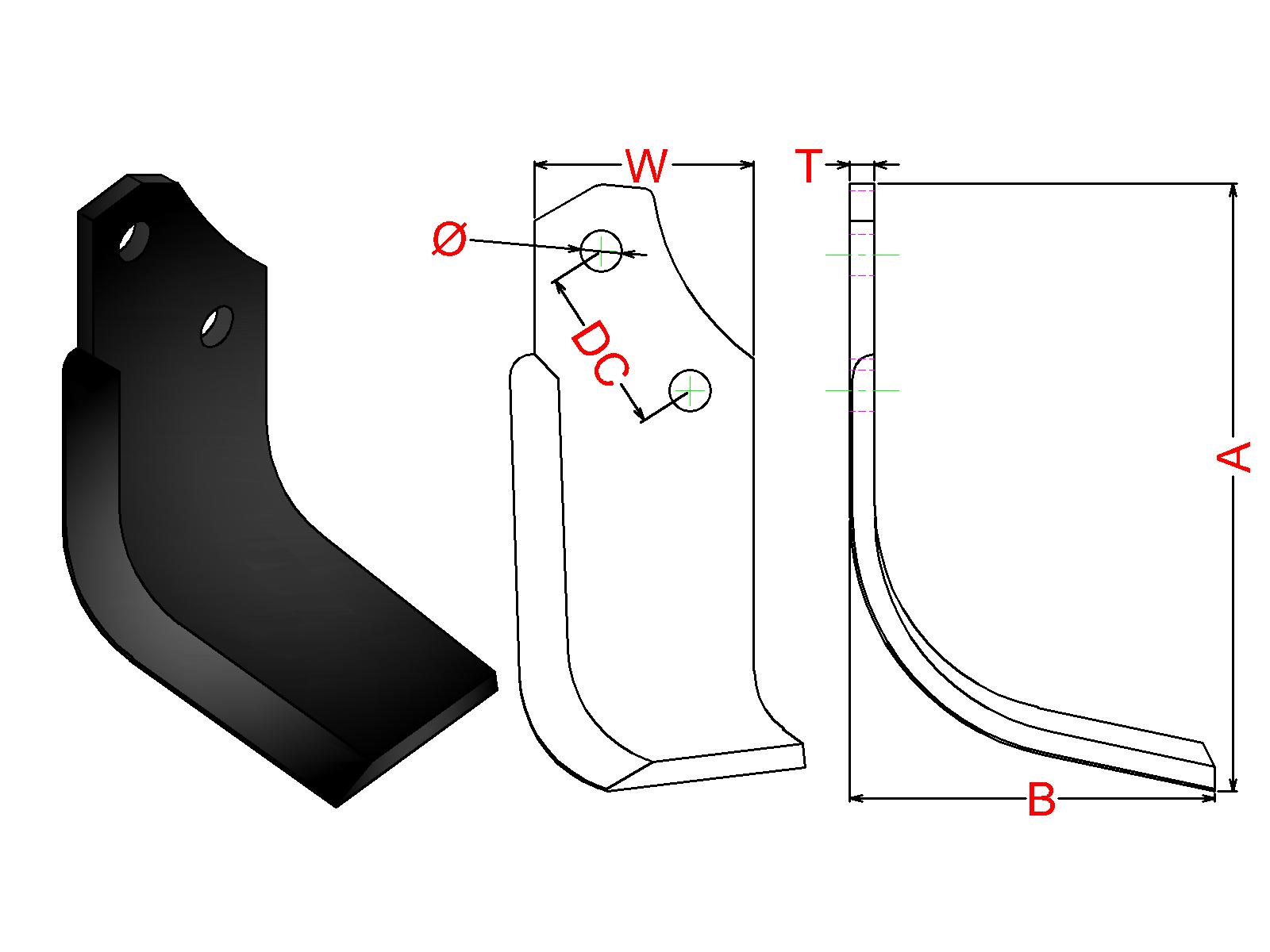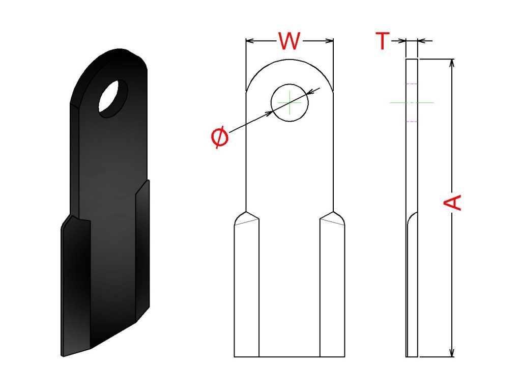 Cuchilla Ref: nº.695/ Medidas: A:250 B:150 /Pletina:90X10 / Dist.centros: 68 / Taladro: 17 / Peso: 1,500 kg.