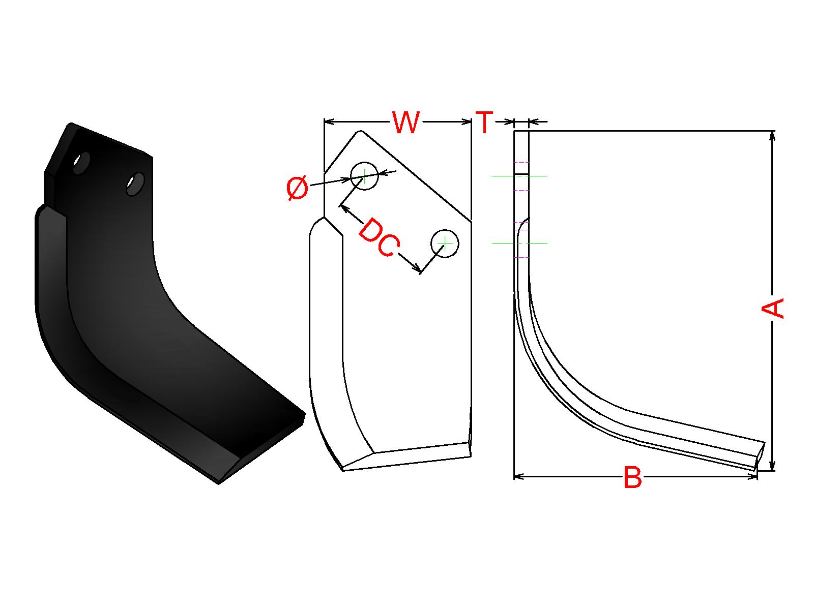 Cuchilla Ref: nº.709/ Medidas: A:185 B:130 /Pletina:80X8 / Dist.centros: 57 / Taladro: 14.5 / Peso: 1,420 kg.