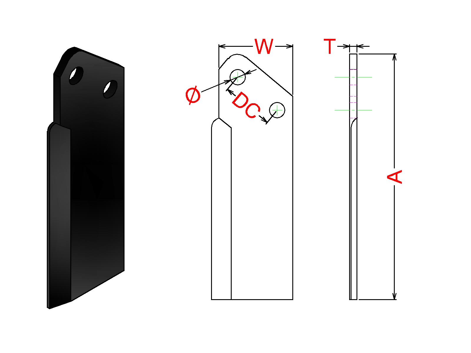 Cuchilla Ref: nº.716R/ Medidas: A:215 /Pletina:60X6 / Dist.centros: 42 / Taladro: 12.5 / Peso: 0,720 kg.