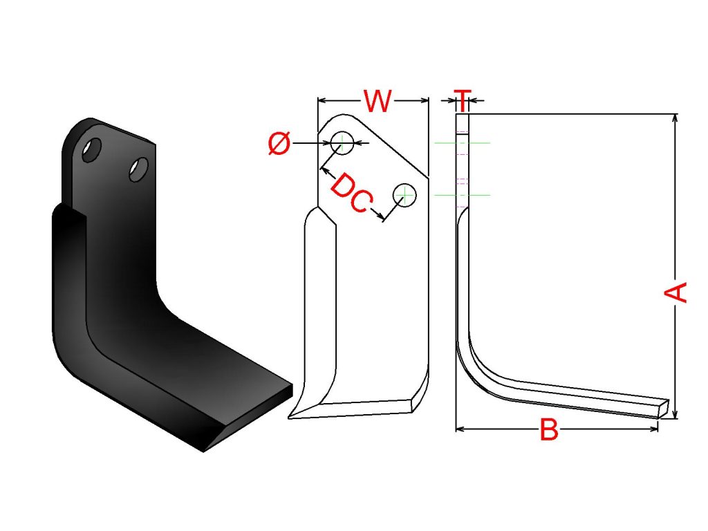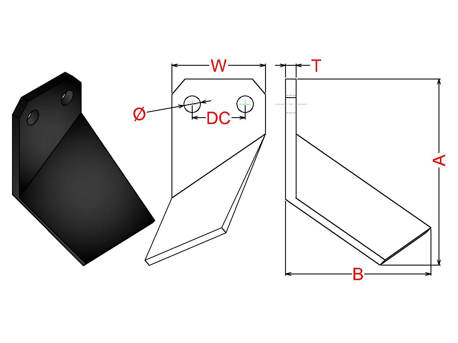 Cuchilla Ref: nº.723 / Medidas: A: B: / Pletina: 90X10 / Dist.centros: 51 / Taladro: 16,5 / Peso: kg